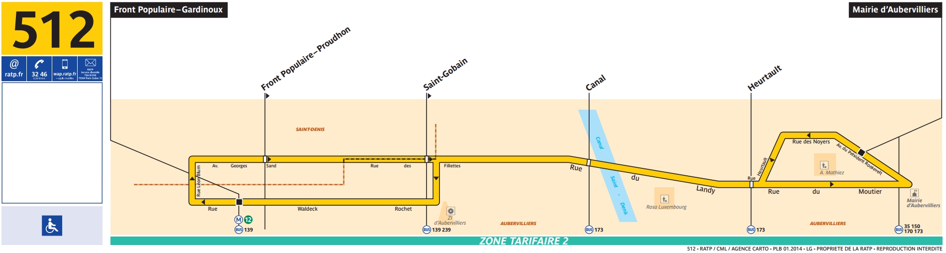 Découvrez la ligne 512 du réseau de bus de Paris et sa banlieue qui dessert de nombreux arrêts de bus entre les Terminus Front Populaire - Gardinoux et Mairie d´Aubervilliers.